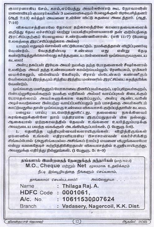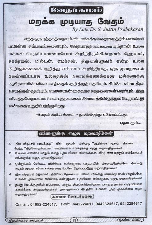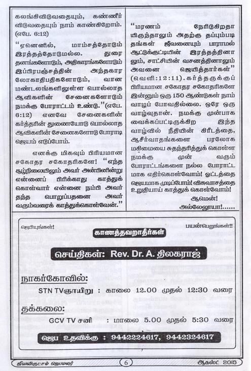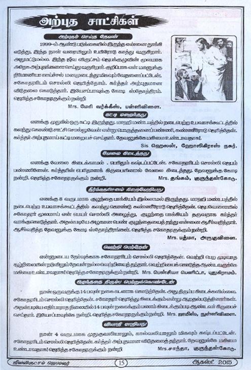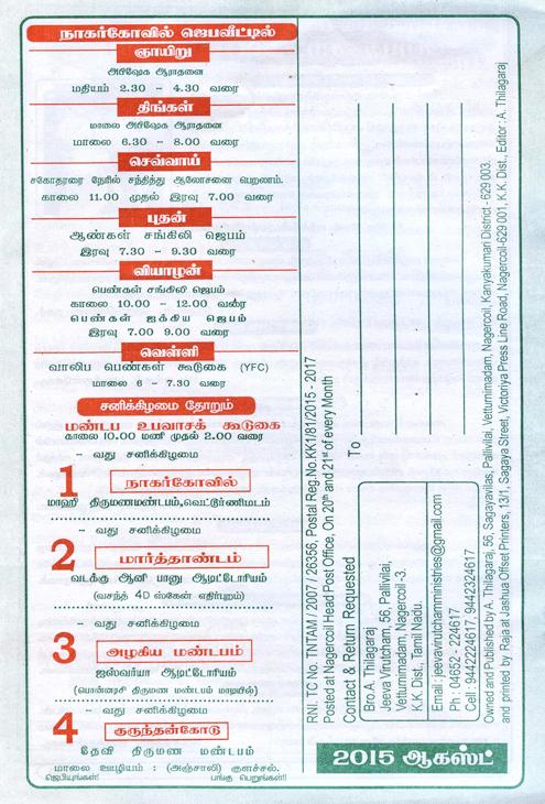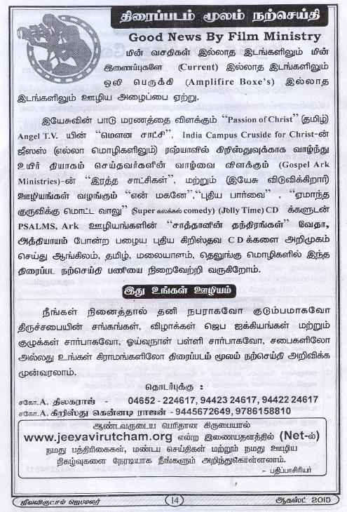 Jeeva Virutcham Ministries - August 2015 Magazine