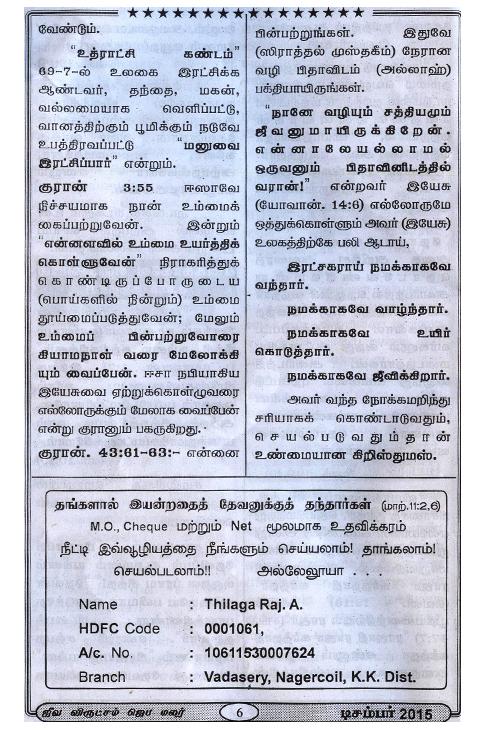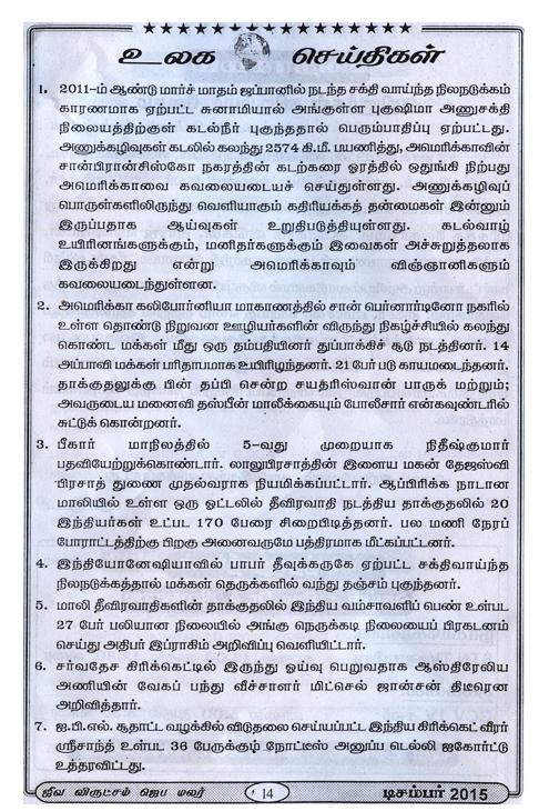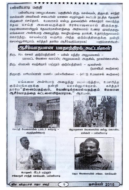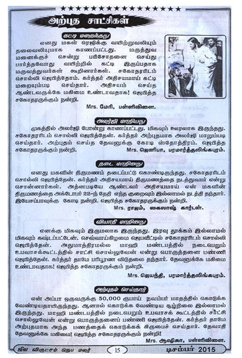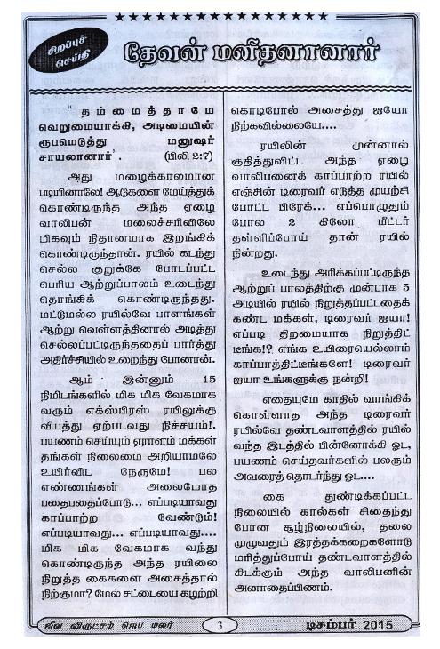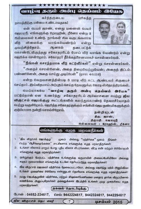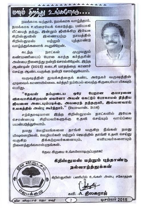 Jeeva Virutcham Ministries - December 2015 Magazine