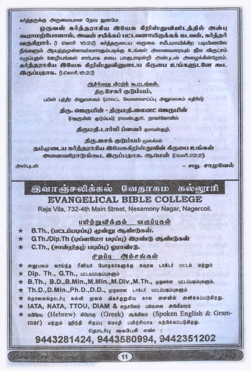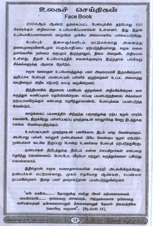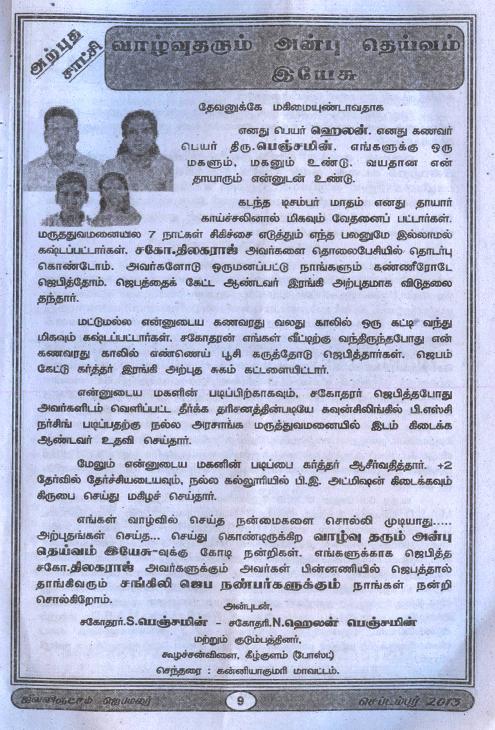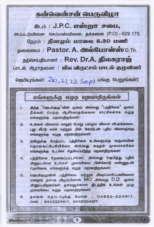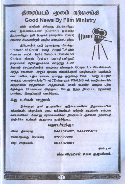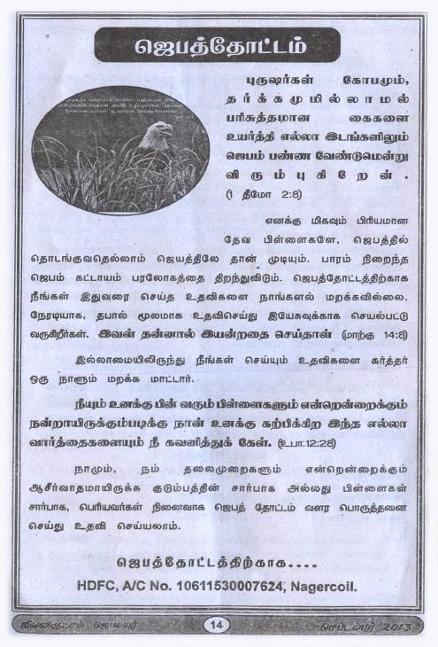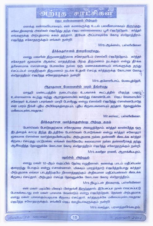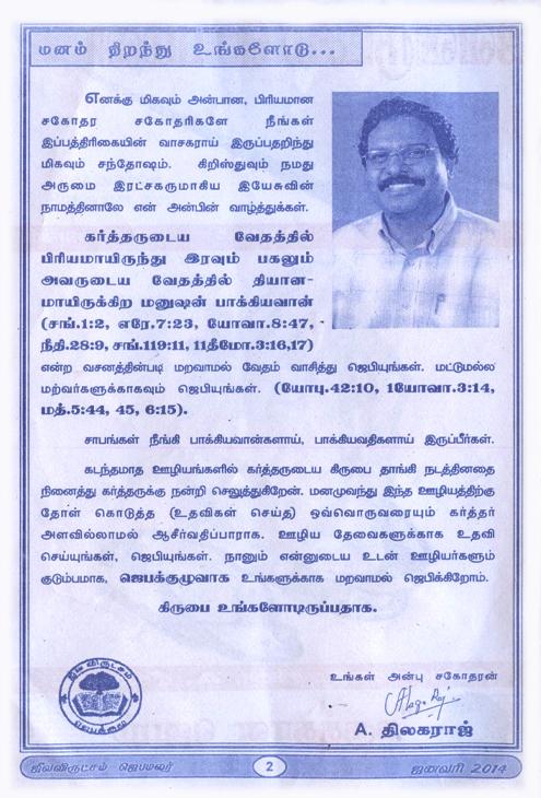 Jeeva Virutcham Ministries - January 2014 Magazine