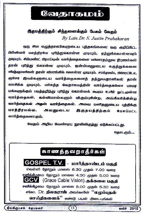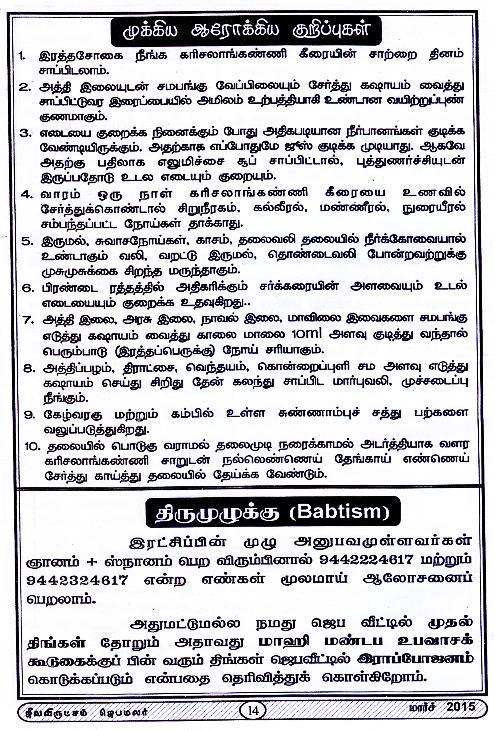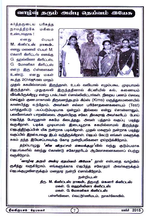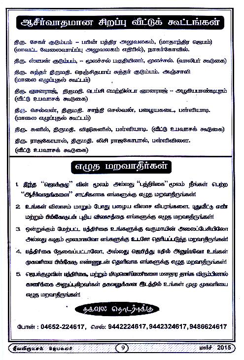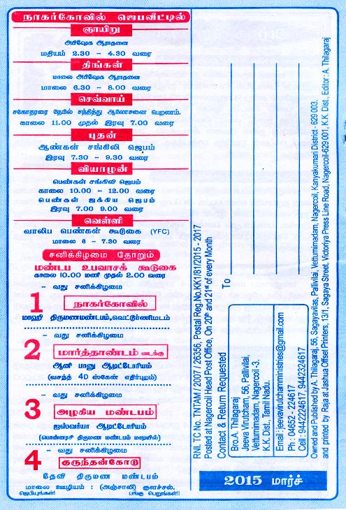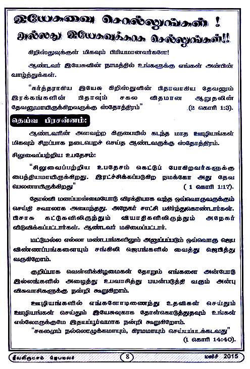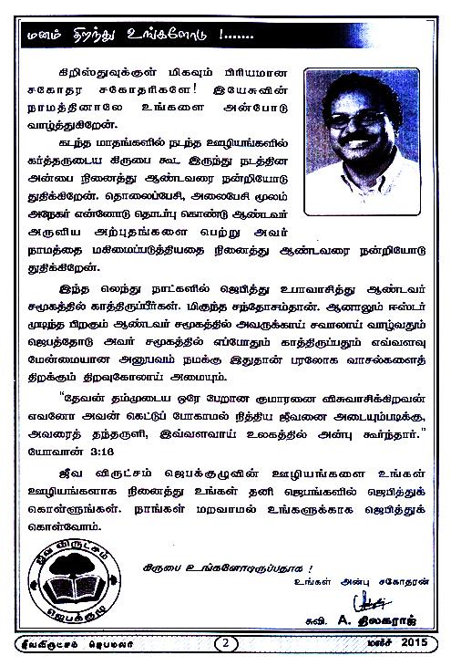 Jeeva Virutcham Ministries - March 2015 Magazine