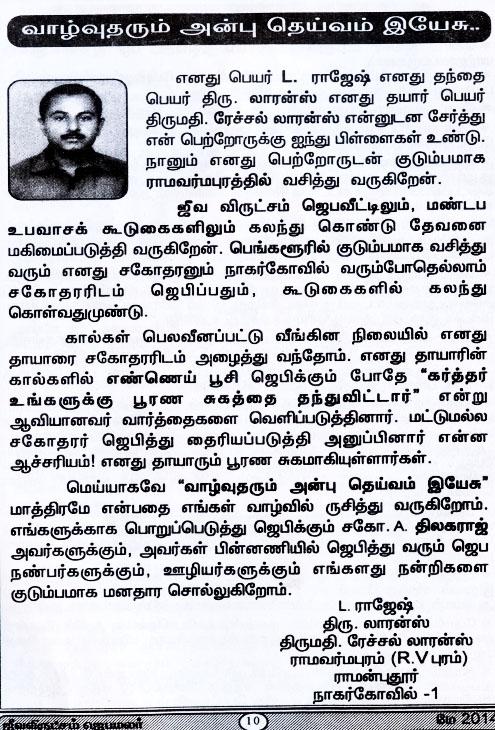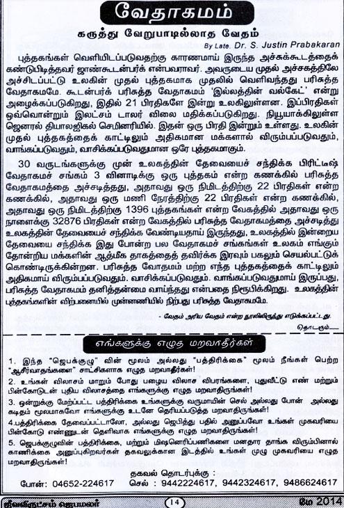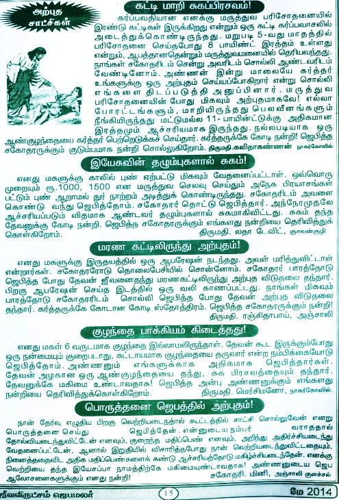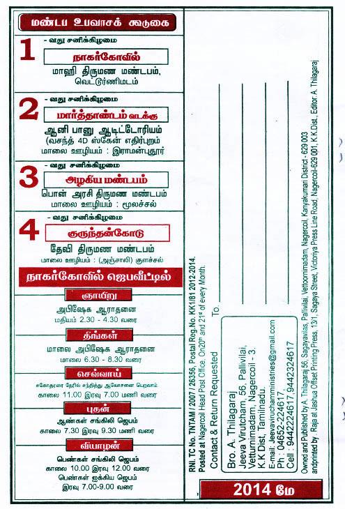 Jeeva Virutcham Ministries - May 2014 Magazine