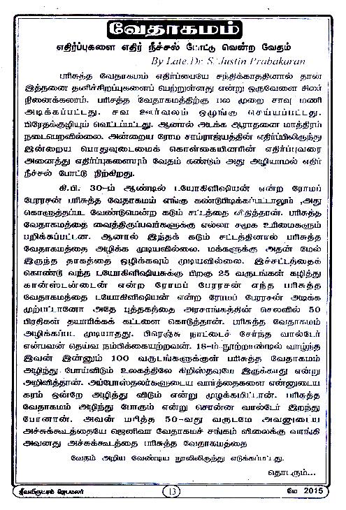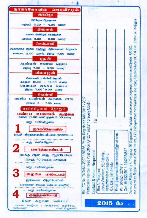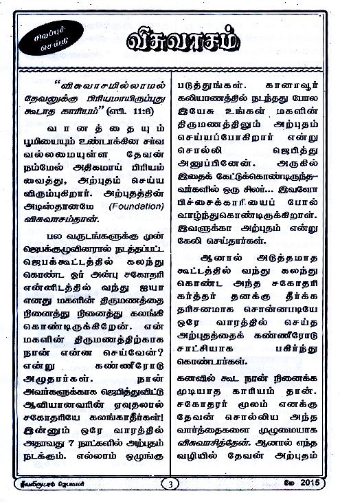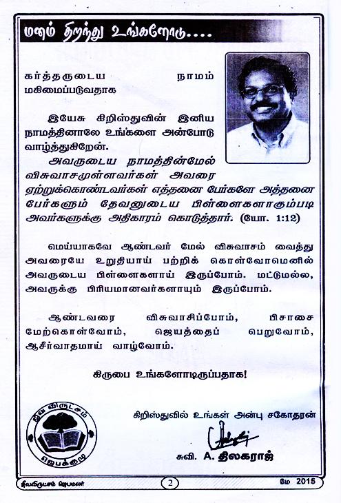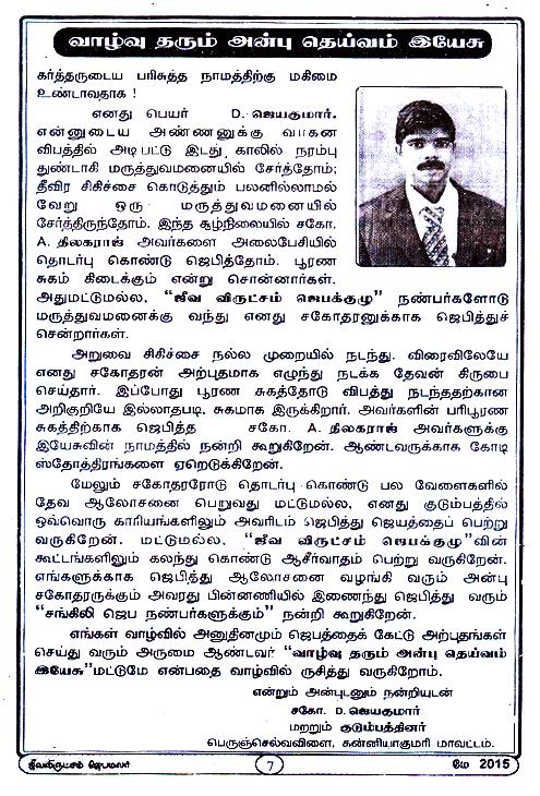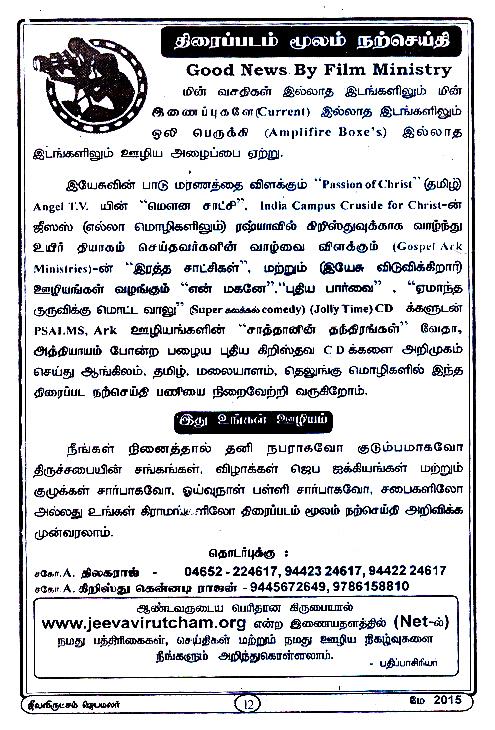 Jeeva Virutcham Ministries - May 2015 Magazine