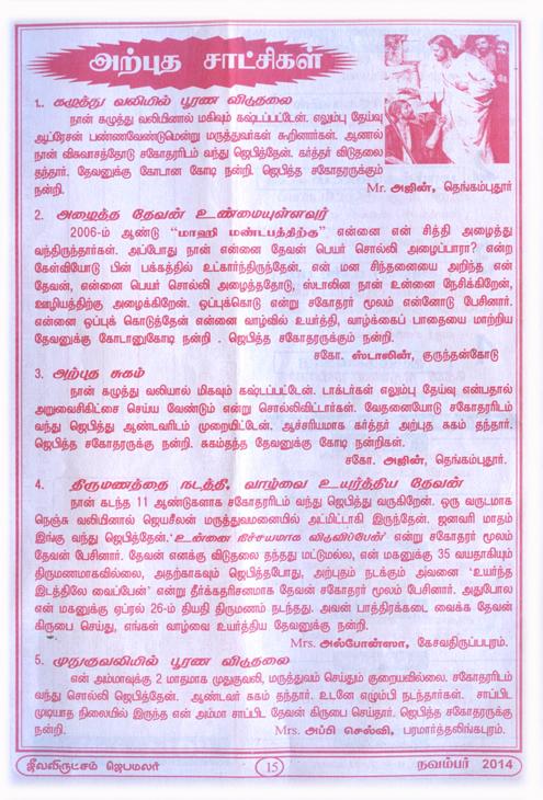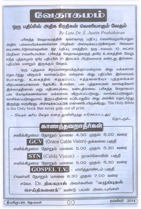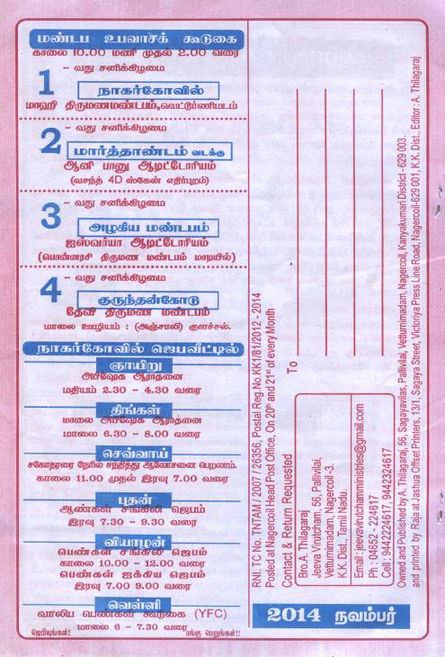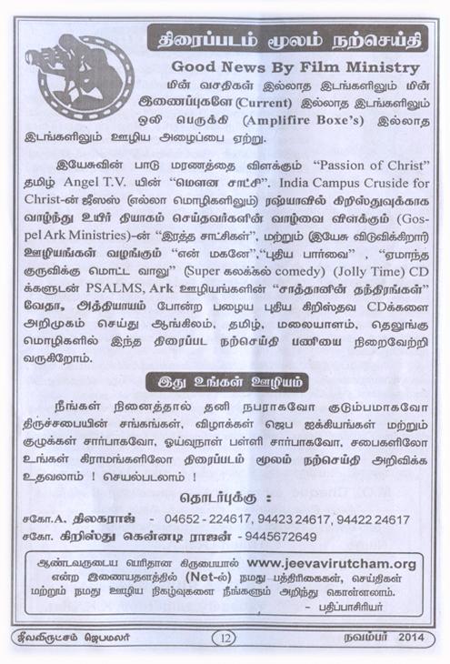 Jeeva Virutcham Ministries - November 2014 Magazine