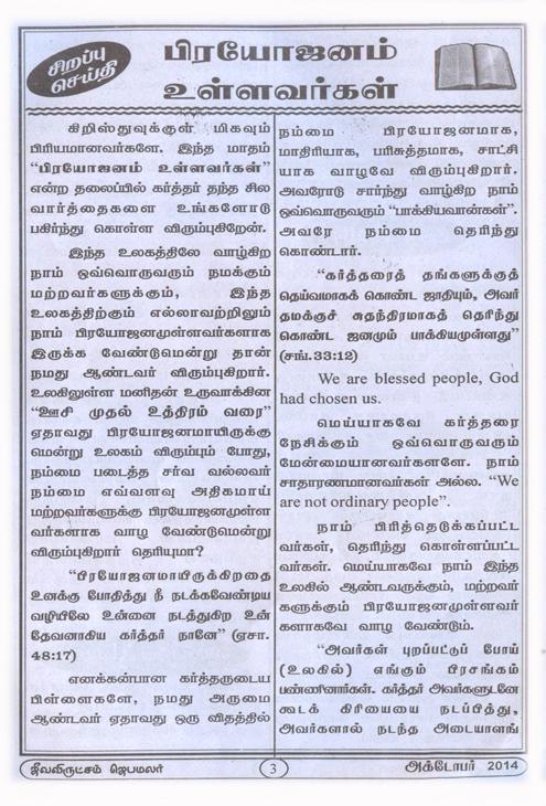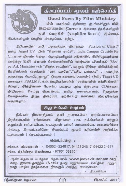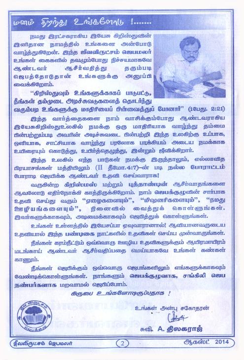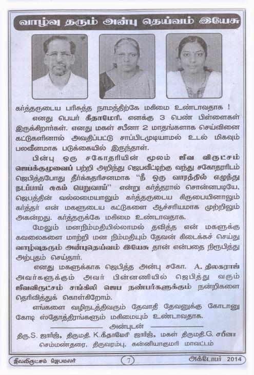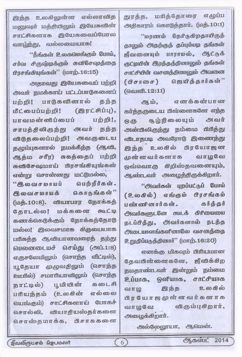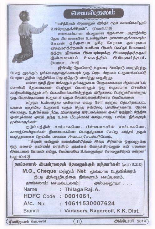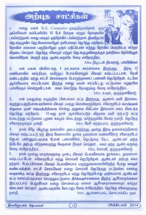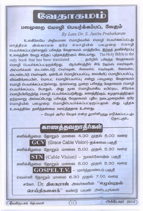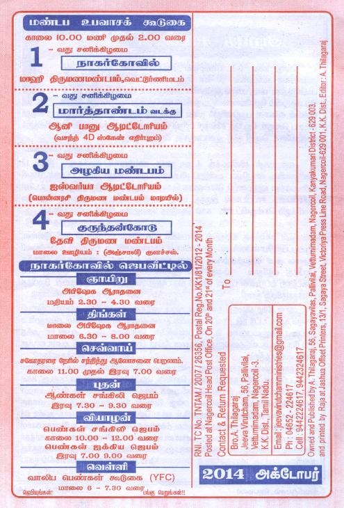 Jeeva Virutcham Ministries - October 2014 Magazine