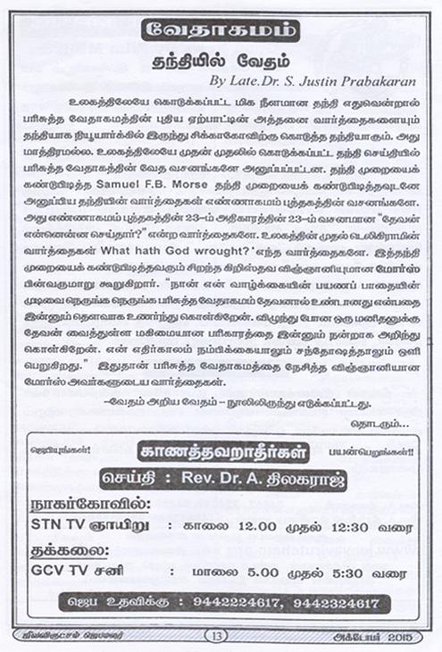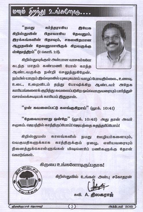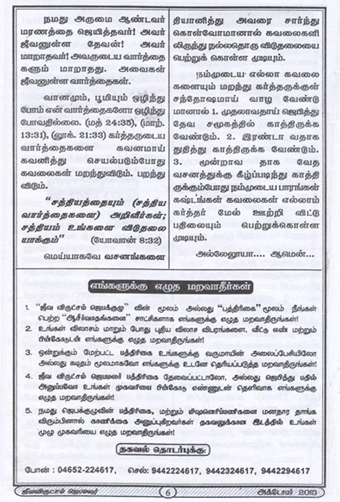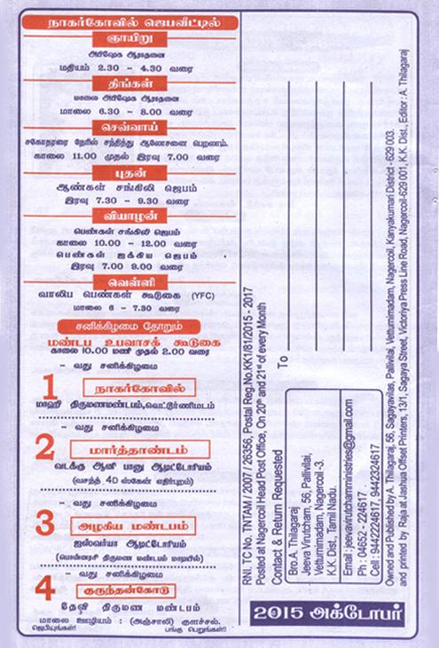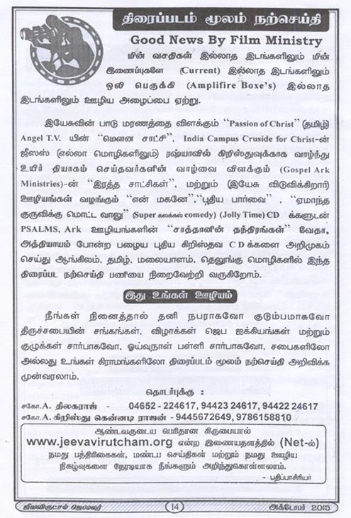 Jeeva Virutcham Ministries - October 2015 Magazine